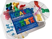 9-007 Koala Game (50 Small Koalas + 5 Koala carriages + one spinner + games’ instructions in a clear plastic storage case). Addition and subtraction games for ideal group size 4 to 5 children.
